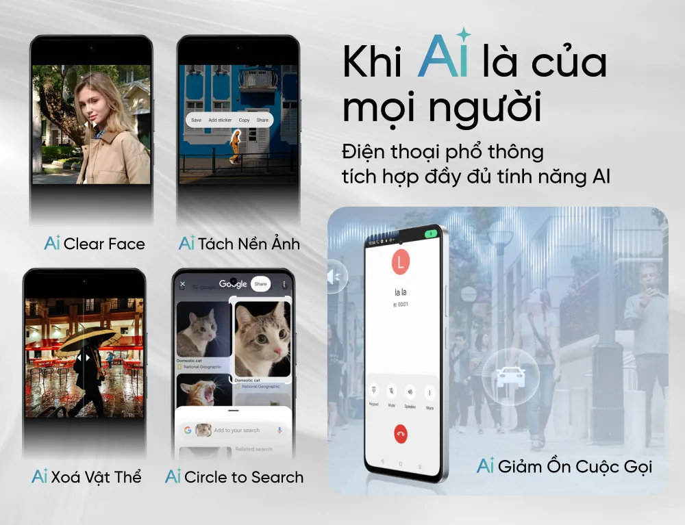Thiết bị cũng tích hợp Google Gemini và Circle to Search, giúp tìm kiếm trực quan bằng thao tác khoanh tròn ngay trên màn hình. realme C71 còn được trang bị AI Noise Reduction Call 2.0 – công nghệ lọc nhiễu cuộc gọi thông minh, giúp đàm thoại rõ ràng hơn trong môi trường có nhiều tiếng ồn.