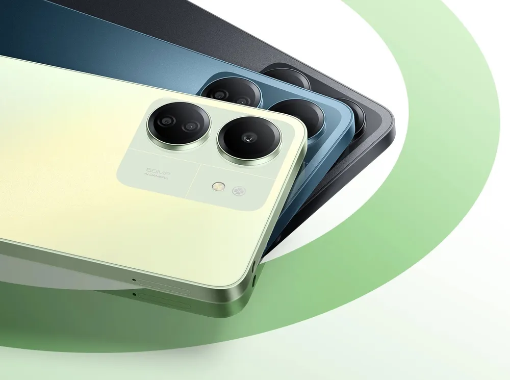 Redmi 13C với độ mỏng chỉ 8,09mm, khung viền phẳng cùng màn hình giọt nước chứa camera selfie. Thiết kế viền khung với bốn góc bo tròn, tạo cảm giác thoải mái khi cầm nắm. Mặt sau điện thoại là cụm 3 camera AI 50MP được đặt trên modul hình chữ nhật cùng hiệu ứng chuyển màu vô cùng độc đáo.