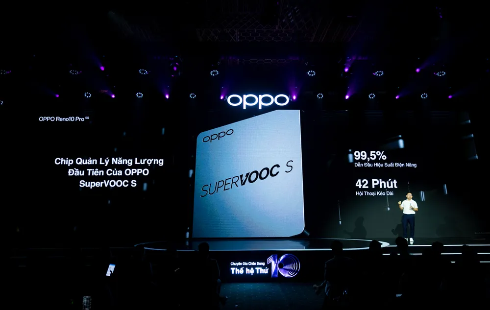 Ngoài ra, OPPO giới thiệu chip quản lý năng lượng độc quyền của hãng – SUPERVOOC S – lần đầu tiên được trang bị trên dòng Reno. SUPERVOOC S kết hợp sáu chức năng, bao gồm sạc, xả, giải mã, khởi động lại, bảo vệ pin và ngắt mạch vào một con chip duy nhất, giúp giảm 45% không gian chiếm dụng bởi các bộ phận sạc nhanh trong điện thoại và tăng hiệu xả pin lên đến 99,5%. Với SUPERVOOC S, viên pin 4.600mAh trên Reno10 Pro 5G có thể đáp ứng khoảng 1,5 ngày sử dụng, giúp người dùng thoải mái trong mọi hoạt động mà không cần lo lắng về pin điện thoại.