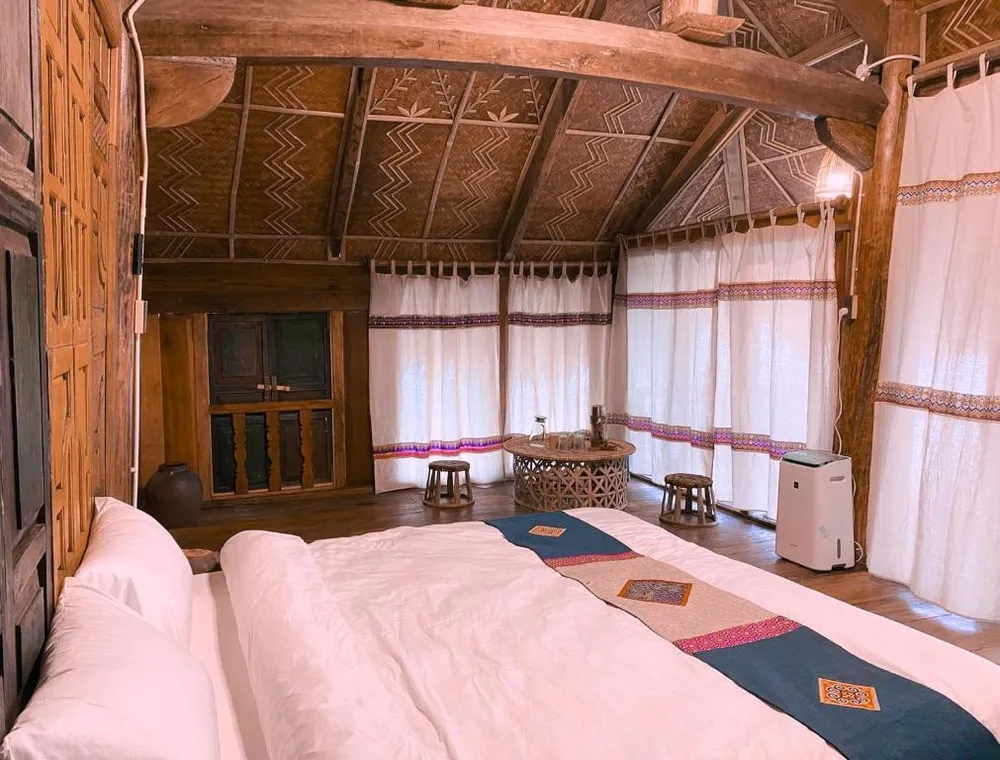 Lấy cảm hứng từ những nét văn hóa đặc sắc của vùng đất Hà Giang, 12 bungalow của Riz d’Or Ermitage là sự kết hợp hài hòa giữa kiến trúc bản địa với phong cảnh thiên nhiên xung quanh. Tất cả đều được xây dựng dọc theo sườn đồi, với tầm nhìn ra ruộng bậc thang và khung cảnh xanh mướt của cây cối bao quanh.