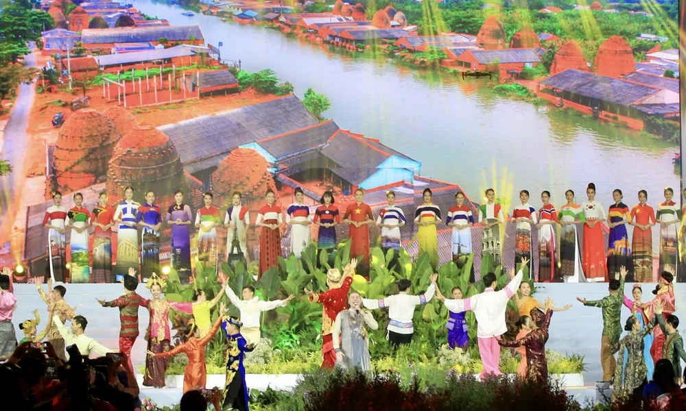 | Không chỉ là sự kiện mở đầu cho Lễ hội Áo dài TPHCM lần thứ 9, lễ khai mạc còn là chương trình nghệ thuật đặc sắc với thông điệp về một TPHCM - nơi hội tụ và giao thoa văn hóa, một điểm đến an toàn - sống động - thân thiện và tràn đầy hứng khởi. Ảnh: DŨNG PHƯƠNG |