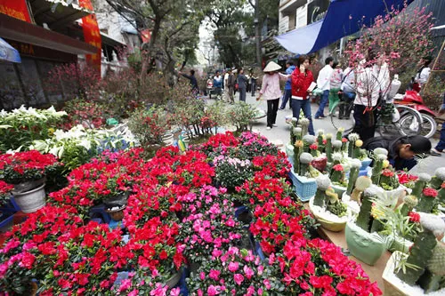 Ngoài hoa đào, chợ hoa tết ở phố Hàng Lược (Hà Nội) còn bày bán nhiều loại hoa khác ở các vùng miền, tạo thêm sự phong phú cho sắc xuân