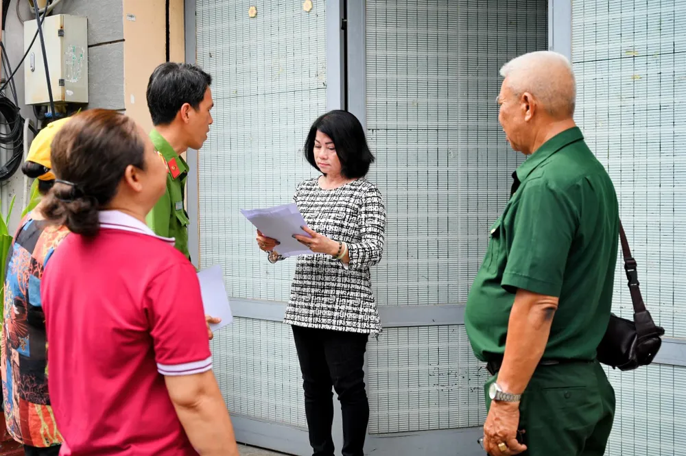 Các cô chú Ban điều hành khu phố và Cảnh sát khu vực cũng tổ chức tuyên truyền phòng chống tội phạm tín dụng đen, các loại hình tội phạm để mọi người cùng cảnh giác; nâng cao ý thức, không tin vào dịch vụ quảng cáo trên tường, trụ điện…
