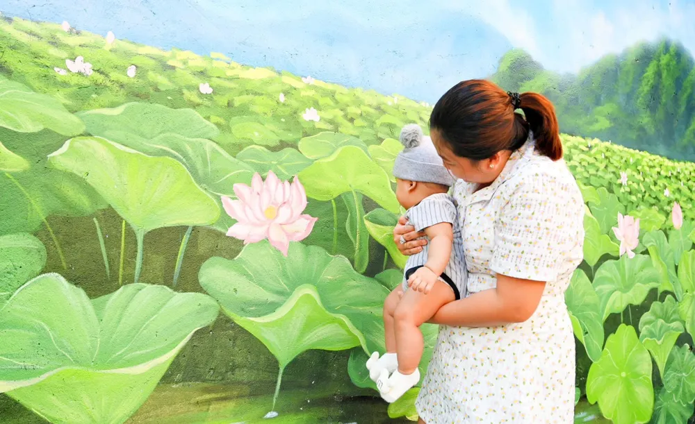 Tại con hẻm, người dân thích thú với diện mạo mới của phố phường, chụp các bức hình lưu niệm bên gia đình trong ngày lễ Quốc khánh.