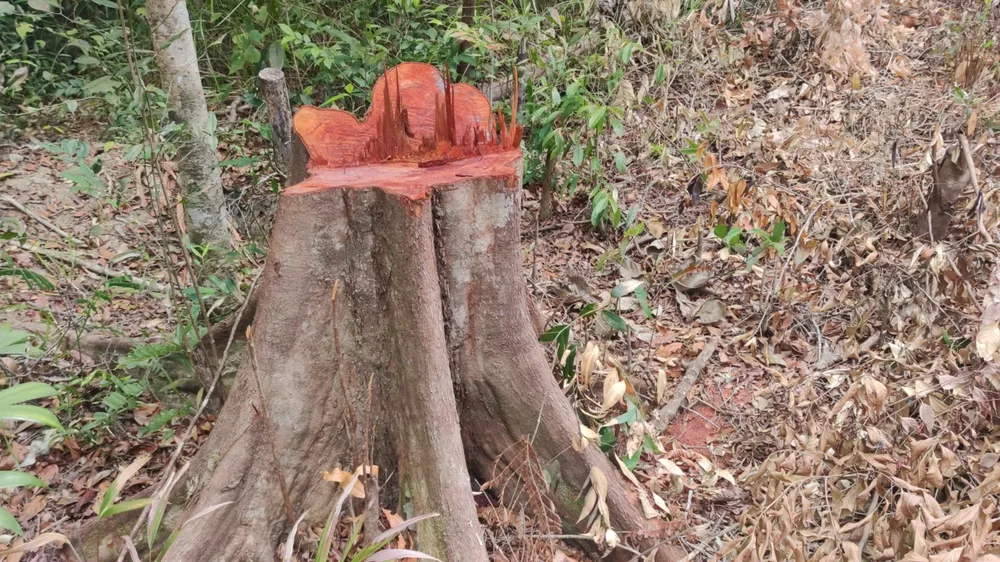 Cụ thể, tại lô 101, khoảnh 1, tiểu khu 275, xã Ia Bă có hơn 5.800m² rừng sản xuất do đơn vị quản lý bị phá. Tại vị trí này, toàn bộ các cây rừng đã bị chặt hạ khoảng 20 ngày trước bằng cưa xăng, dao rựa.