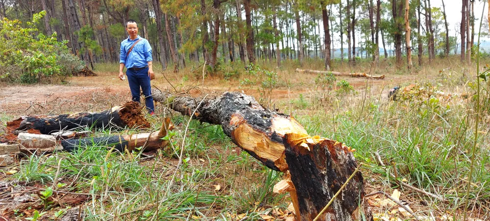Trước đó, Báo SGGP Online phản ánh những vạt rừng thông tuyệt đẹp nằm giáp ranh 2 xã Tân Bình, Glar đang bị “xẻ thịt”. Tại đây, cây thông chết đứng hàng loạt, thân bị đục khoét, nhiều cây gốc bị cháy đen.