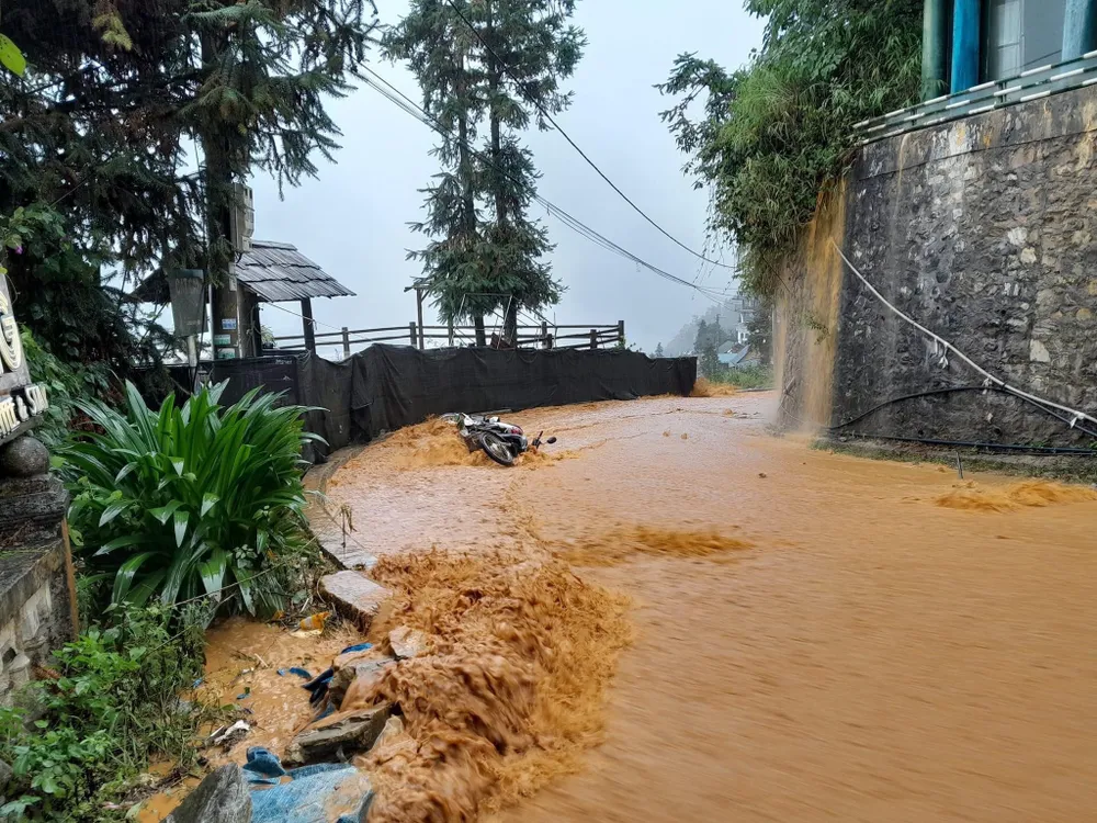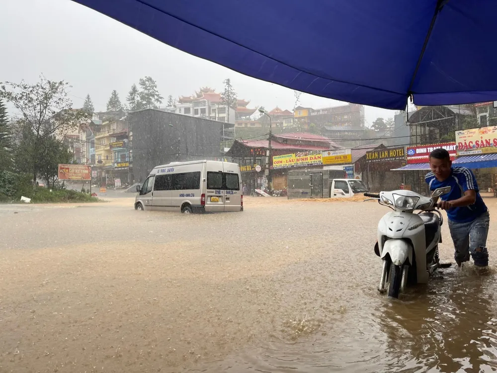 Khoảng 14 giờ ngày 20-9, trên địa bàn thị xã Sa Pa (Lào Cai) đã xuất hiện cơn mưa lớn, kéo dài trong khoảng 1 giờ đồng hồ, bất ngờ gây ngập lụt, tắc ứ cục bộ tại một số tuyến đường ở khu vực trung tâm khu du lịch.