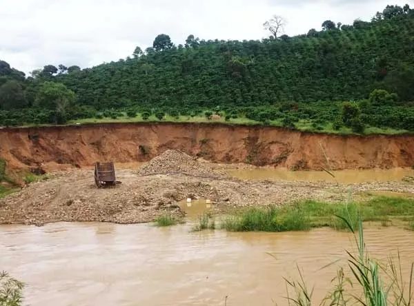 Vườn cà phê của người dân bị hoạt động khai thác cát trái phép gây sạt lở