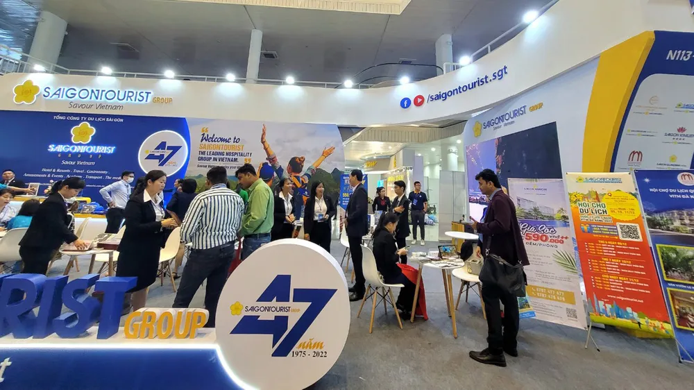 Khách sạn Saigontourane (Đà Nẵng) giới thiệu đến khách dự hội chợ mức giá phòng chỉ từ 450.000 đồng dành cho 2 khách (đã bao gồm ăn sáng); miễn phí đón hoặc tiễn sân bay cho đoàn trên 5 phòng và lưu trú từ 2 đêm. Ngoài ra, khách sạn còn ưu đãi 40% giá thuê phòng hội nghị, hội thảo, ưu đãi 10% dịch vụ ẩm thực và ưu đãi 50% dịch vụ âm thanh, dàn karaoke online tiệc từ 4 bàn. Thời hạn sử dụng các dịch vụ từ ngày 8-12-2022 đến 8-5-2023.