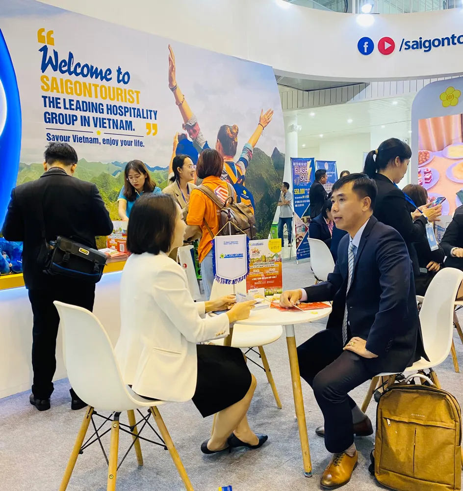 Có gian hàng đặt tại vị trí số 113-122 ngay trung tâm khu vực triển lãm, Saigontourist Group quy tụ sự tham gia, đồng hành của 10 đơn vị thành viên là những đại diện hàng đầu trong các lĩnh vực dịch vụ lữ hành, khách sạn và khu nghỉ dưỡng, bao gồm: Công ty Dịch vụ Lữ hành Saigontourist (Lữ hành Saigontourist), các khách sạn Continental Sài Gòn, Sài Gòn – Morin, Sài Gòn – Phú Yên, Sài Gòn – Quảng Bình, Sài Gòn – Ban Mê, Sài Gòn – Đông Hà, Sài Gòn – Kim Liên, Saigontourane và Khu nghỉ dưỡng Sài Gòn – Ninh Chữ.