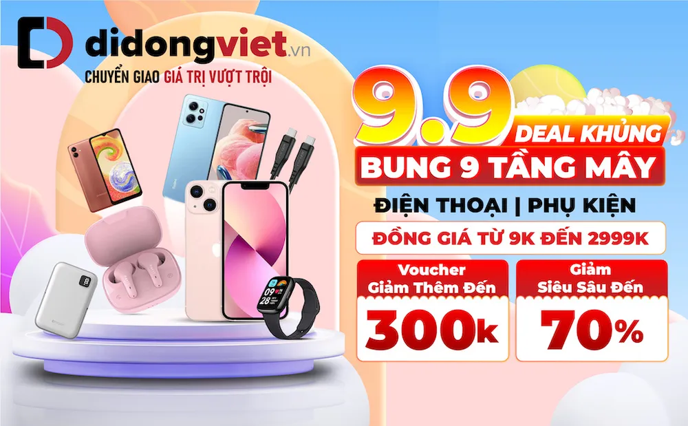 Dịp 9-9 này, Di Động Việt sẽ đem đến cho người dùng hàng trăm suất bán đặc biệt với giá chỉ từ 9.000 đồng, gồm: 40 suất cáp ACEFAST Type C to Type C chỉ còn 9.000 đồng, 100 suất bộ sạc Horizone 99.000 đồng, 50 suất cáp Innostyle Jazzy type C màu đen 99.000 đồng, 50 suất tai nghe True Wireless HAVIT TW959 còn 199.000 đồng…