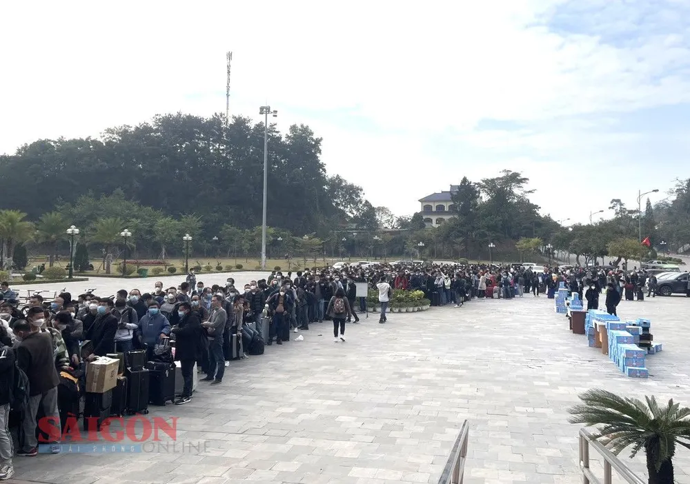 * Ghi nhận tại Cửa khẩu Quốc tế Hữu nghị ở tỉnh Lạng Sơn, từ 7 giờ đã có hàng đoàn người Trung Quốc tới xếp hàng chờ làm thủ tục xuất cảnh về nước.
