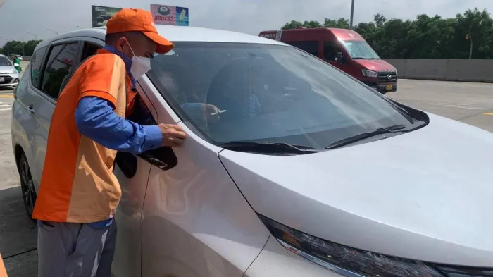 Các phương tiện chưa có thẻ được dán tại điểm cách trạm 50m. Nhân viên, nhà cung cấp dịch vụ đã túc trực hỗ trợ các tài xế dán thẻ, tải app nạp tiền để thanh toán qua trạm.
