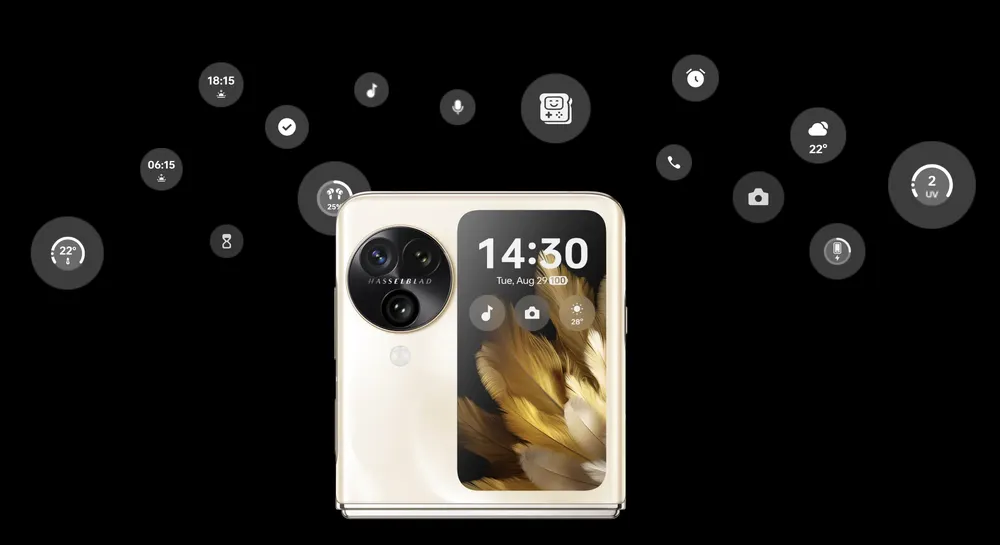 Không chỉ hữu dụng, màn hình ngoài trên Find N3 Flip còn mang lại khả năng cá nhân hóa hình nền đa dạng, trở thành một phụ kiện tỏa sáng cho người dùng trong mọi tình huống. Tính năng thú cưng tương tác 2D đáng yêu trên Find N2 Flip đã được phát triển lên 3D trên Find N3 Flip, bao gồm 8 thú cưng khác nhau với 18 biểu cảm đa dạng. Ngoài ra, người dùng cũng có các tùy chọn hình nền định dạng động, hình dạng tĩnh trên màn hình ngoài, mang dấu ấn cá nhân riêng biệt của từng người sở hữu.
