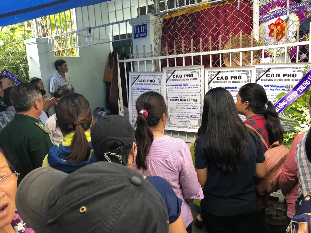 Cả tổ dân phố từ đầu nghõ đến cuối hẻm chật kín người qua lại, nhiều người đỏ hoe mắt vì khóc tiếc thương cho gia đình xấu số. Họ hướng về số nhà 11/14C Hòa Trung – nơi có đến 4 cái quan tài được đặt giữa gian chính ngôi nhà. Căn nhà này là của bố mẹ thầy Trần Hoàng Phong, sinh 1985, giáo viên Trường CĐSP Trung ương Nha Trang.