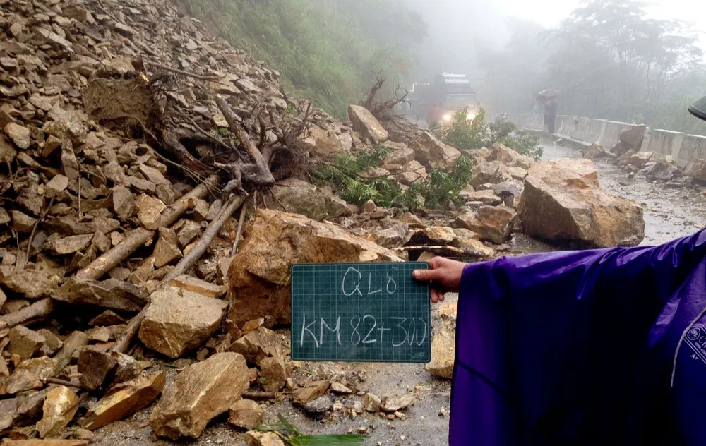Hiện trường sạt lở trên Quốc lộ 8A