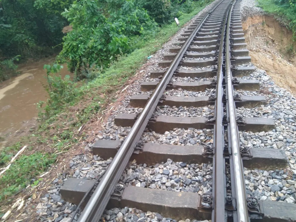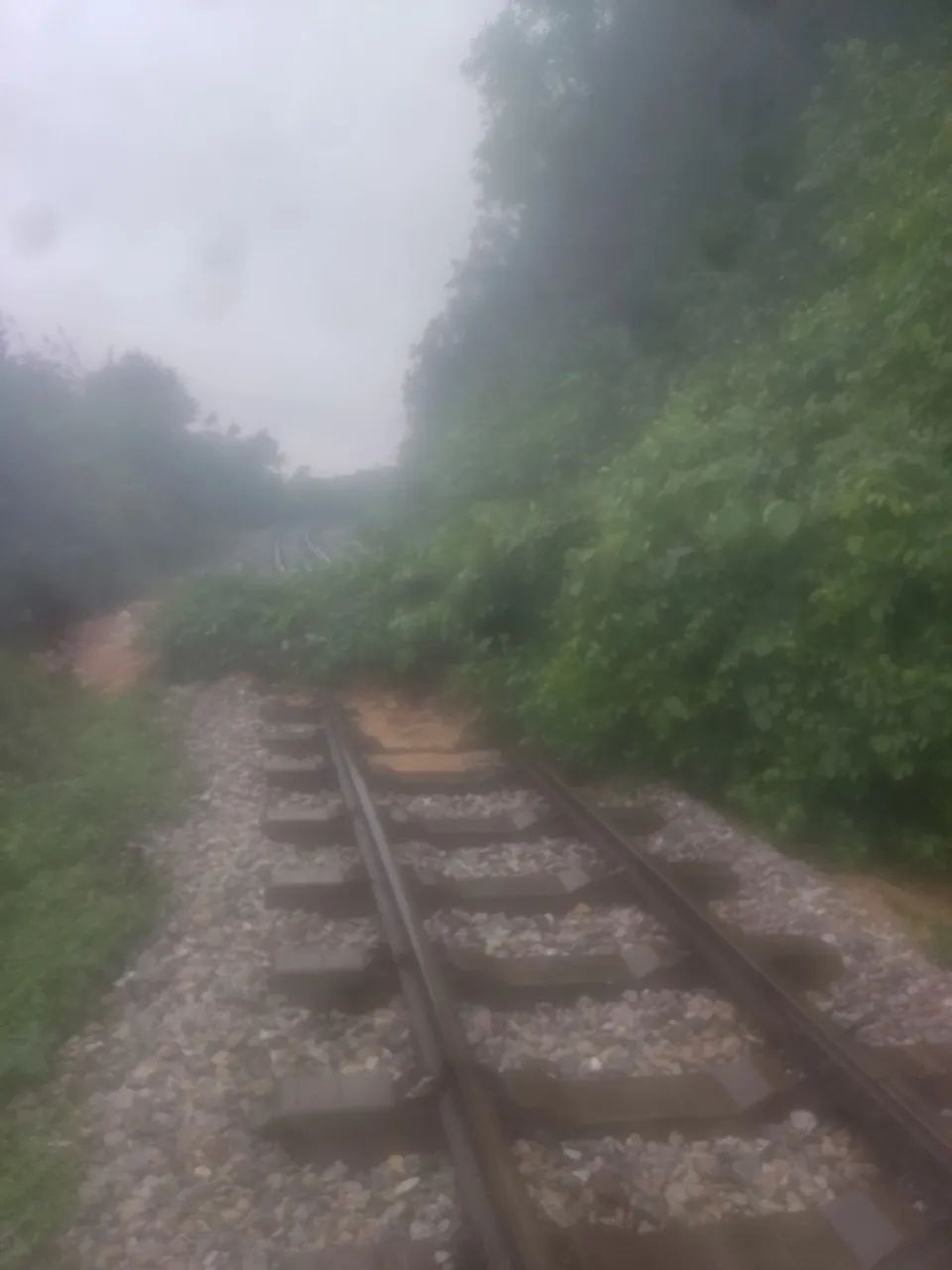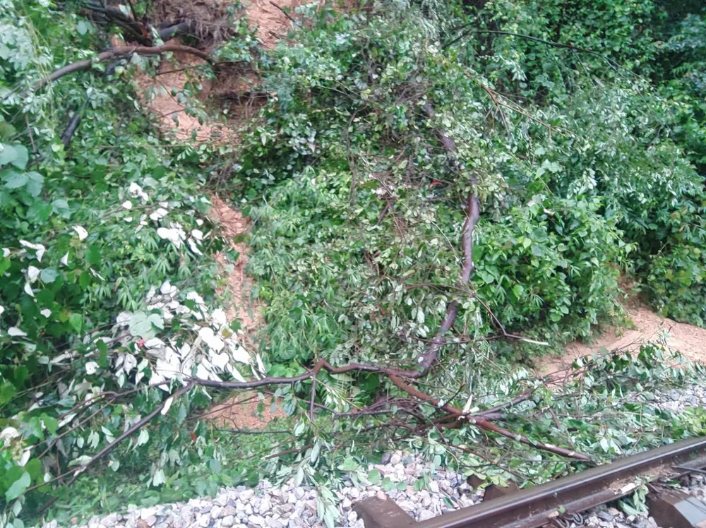 Ngoài ra, mưa lớn cũng khiến nhiều đất đá, cây xanh từ trên núi sạt lở chảy tràn xuống bồi lấp đường sắt.