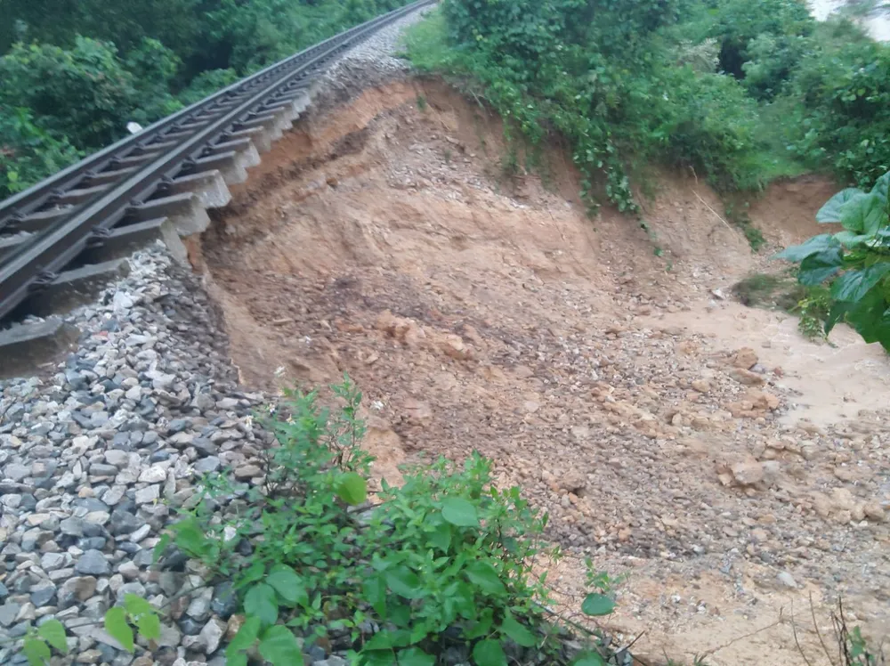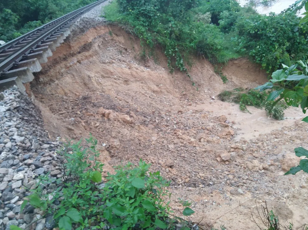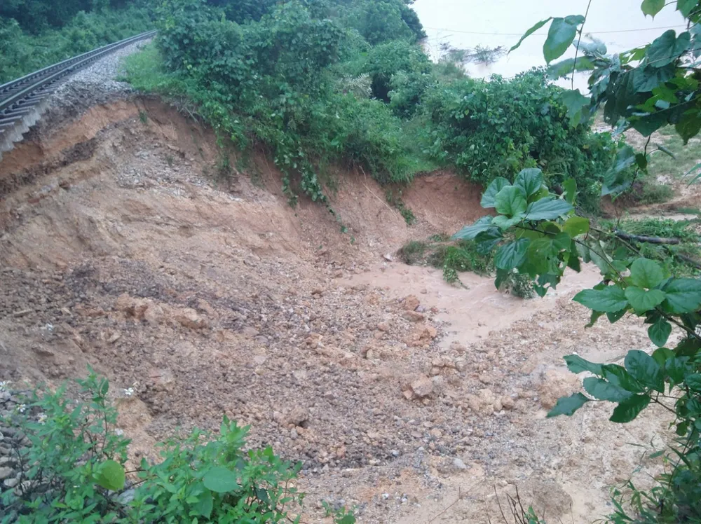 Theo thông tin ban đầu, vào khoảng 1 đến 2 giờ sáng ngày 30-10, tại Km354+900 đến 355+400, khu gian Yên Duệ - Hòa Duyệt (thuộc địa bàn thôn Liên Châu, xã Đức Liên, huyện Vũ Quang, tỉnh Hà Tĩnh) do ảnh hưởng mưa lớn khiến phía taluy âm của tuyến đường sắt Bắc - Nam bị sạt lở, trụt mái, nhiều đất đá trôi khỏi nền đường và khoét hàm ếch tại một số vị trí.