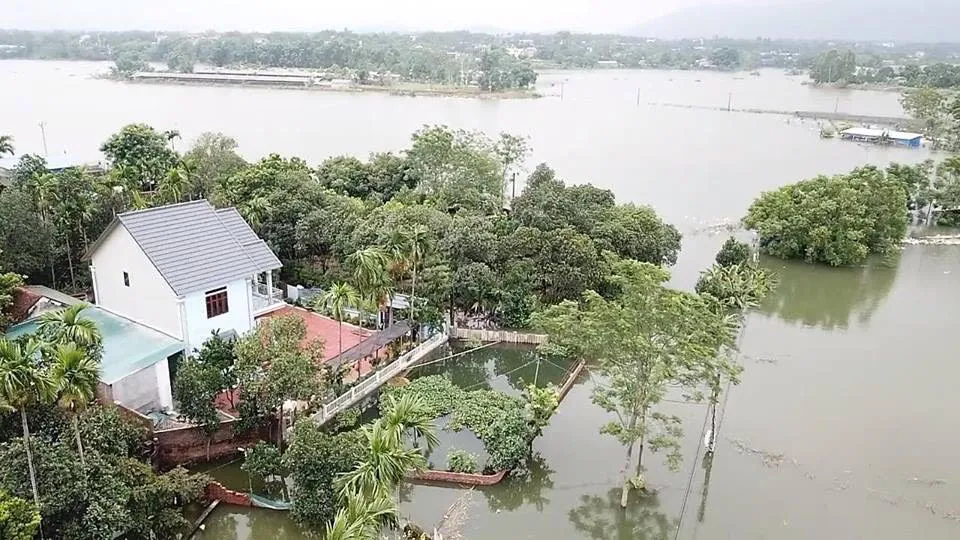 Hình ảnh tại xã Phú Cát, huyện Quốc Oai, nơi cách trung tâm Hà Nội khoảng 30km về phía Tây vẫn ngập trắng lũ