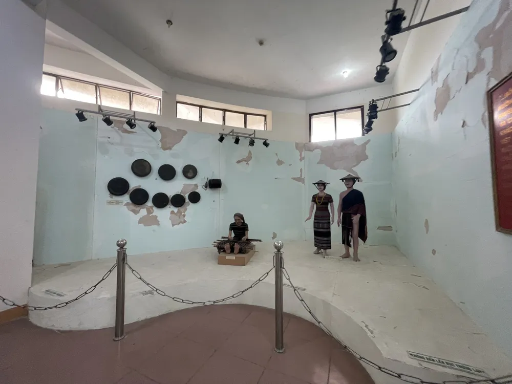 | Nơi trưng bày văn hóa bản sắc vùng đồng bào dân tộc của tỉnh Quảng Ngãi bị bong tróc, xuống cấp nặng. Ảnh: NGUYỄN TRANG |