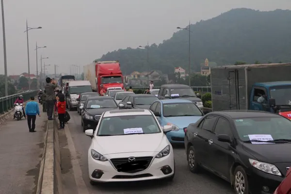 Sáng 2-4, quốc lộ 1A khu vực cầu Bến Thủy bị ách tắc do tập trung ô tô phản đối trạm thu phí BOT Bến Thủy