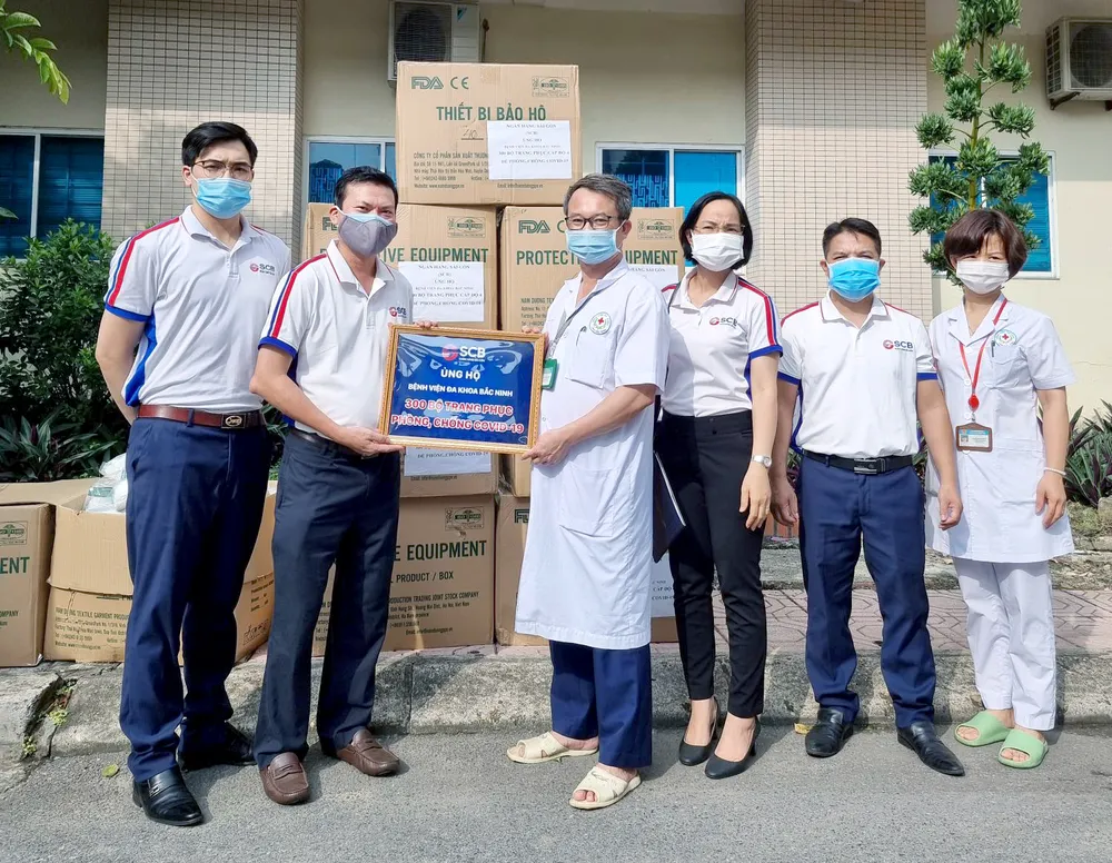 Cụ thể, SCB trao tiền mặt hỗ trợ công tác phòng chống dịch cho mỗi tỉnh là 500 triệu đồng, đồng thời tặng 300 bộ trang phục phòng, chống dịch Covid-19 (cấp độ 4) cho Bệnh viện Đa khoa tỉnh Bắc Ninh.