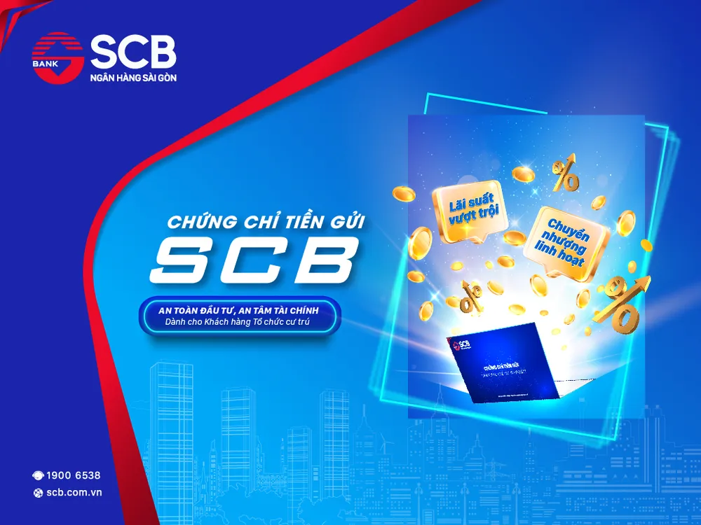 Ngân hàng Thương mại cổ phần Sài Gòn (SCB) đang phát hành “Chứng chỉ tiền gửi dành cho khách hàng tổ chức/doanh nghiệp kỳ hạn 24 tháng” và “Chứng chỉ tiền gửi ngắn hạn” với ưu đãi lãi suất vượt trội.