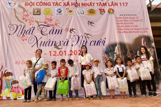 1. “Dịp giáp tết năm nay, ngoài 5 địa điểm ở TPHCM, Bình Thuận, Bình Phước, Trà Vinh, Lai Châu, nhóm mình chọn tổ chức tết “Xuân và nụ cười” ở thôn 20, xã Đắk D’Rông, huyện Cư Jút, tỉnh Đắk Nông nha mọi người. Anh tính mình sẽ tổ chức chương trình ở đây lớn hơn chút so với các điểm khác, bởi thôn 20 là thôn cuối của xã, còn rất nghèo, thiếu thốn nhiều thứ...”. Lời đề nghị của anh Bùi Văn Bi, Đội trưởng Đội Công tác xã hội (CTXH) Nhất Tâm, hiện đang công tác tại Cảng vụ đường thủy nội địa TPHCM, được đông đảo thành viên trong nhóm đồng ý. Vậy là, đội khởi động cho chương trình trước tết 2 tháng. Nhóm truyền thông viết bài trên Fanpage, nhờ mọi người và các thành viên chia sẻ kêu gọi hỗ trợ từ mạnh thường quân, doanh nghiệp tại TPHCM.
