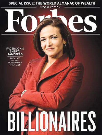Tạp chí Forbes vừa công bố danh sách tỷ phú thế giới 2014 với tổng cộng 1.645 tỷ phú, trong đó có 172 tỷ phú nữ, tăng 25% so với năm ngoái, một kỷ lục. Có 42 tỷ phú nữ lần đầu tiên lọt vào danh sách, với 32 người tự thân lập nghiệp, nổi bật là Sheryl Sandberg (ảnh), Giám đốc Tác nghiệp (COO) của mạng xã hội Facebook, với tài sản trị giá 1,05 tỷ USD.