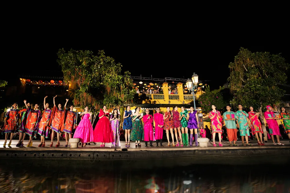 Trong ánh nắng rực rỡ của buổi chiều đầu hạ ở phố cổ Hội An, show diễn Vùng trời bình yên - Homeland của VUNGOC&SON vừa trình làng bộ sưu tập resort 2022.