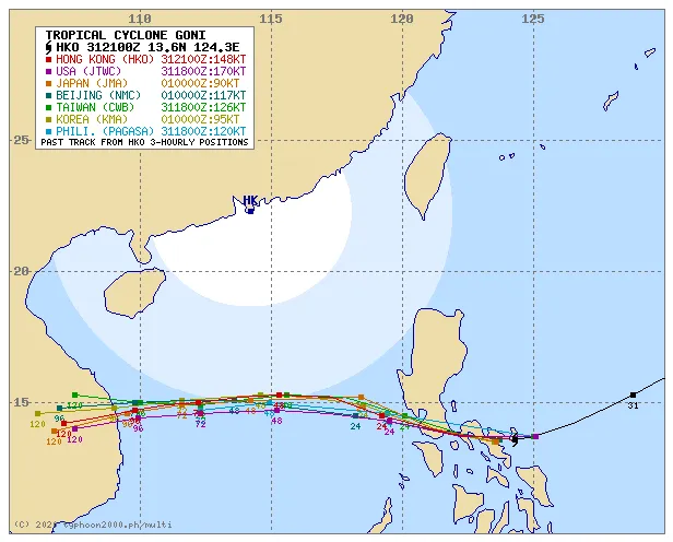 Theo dự báo, khi bão Goni đổ bộ vào vùng lân cận Tiwi, Albay, tâm bão sẽ đi qua các tỉnh Camarines trước khi hướng đến khu vực Marinduque – Nam Quezon vào chiều 1-11, theo giờ địa phương.