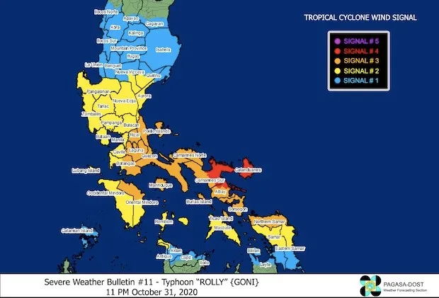 Theo tin từ Tổng cục Phòng chống thiên tai tổng hợp từ các nguồn của Pasaga, NDRRMC và CNN của Philippines, vào lúc 4 giờ 50 phút sáng 1-11 (Chủ nhật), siêu bão Rolly (tiếng địa phương Goni) đã đổ bộ vào vùng lân cận đảo Catanduanes, đô thị Bato (Philippines).