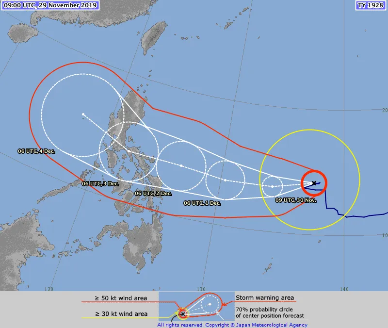 Còn theo Trung tâm Dự báo Khí tượng - Thủy văn Quốc gia của Việt Nam, từ khoảng ngày 4-12, cơn bão Kammuri có khả năng đi vào biển Đông.