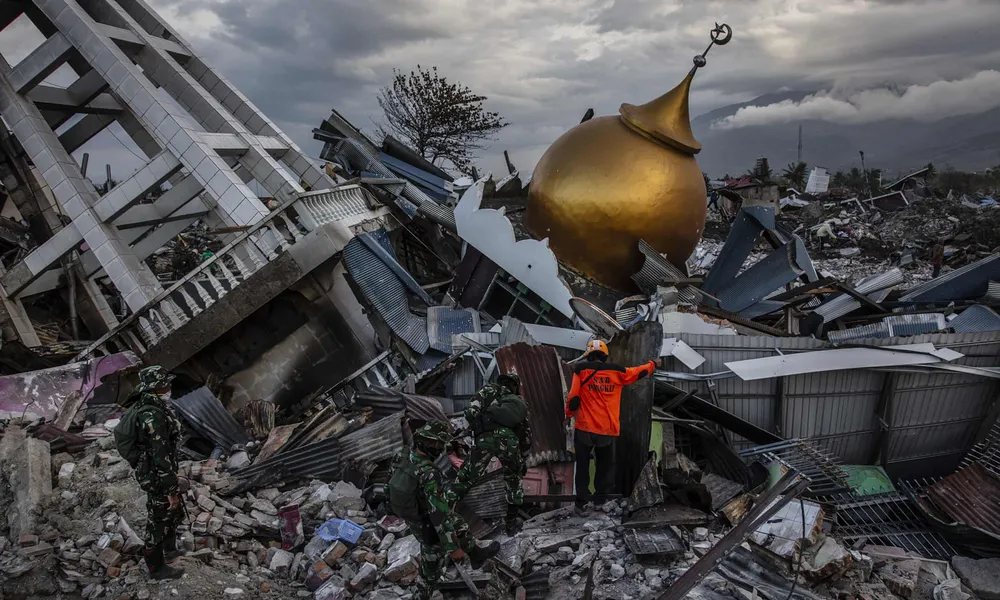 Một nhà thờ hồi giáo bị hư hỏng hoàn toàn sau thảm họa kép