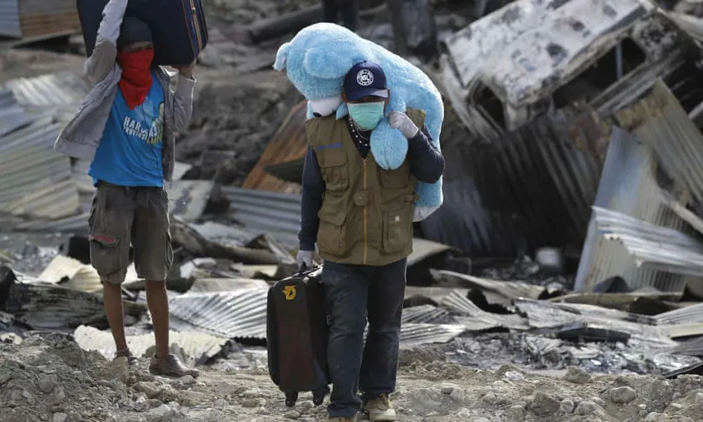 Những ngôi nhà ở làng Petobo bị phá hủy hoàn toàn. Ảnh: The Guardian