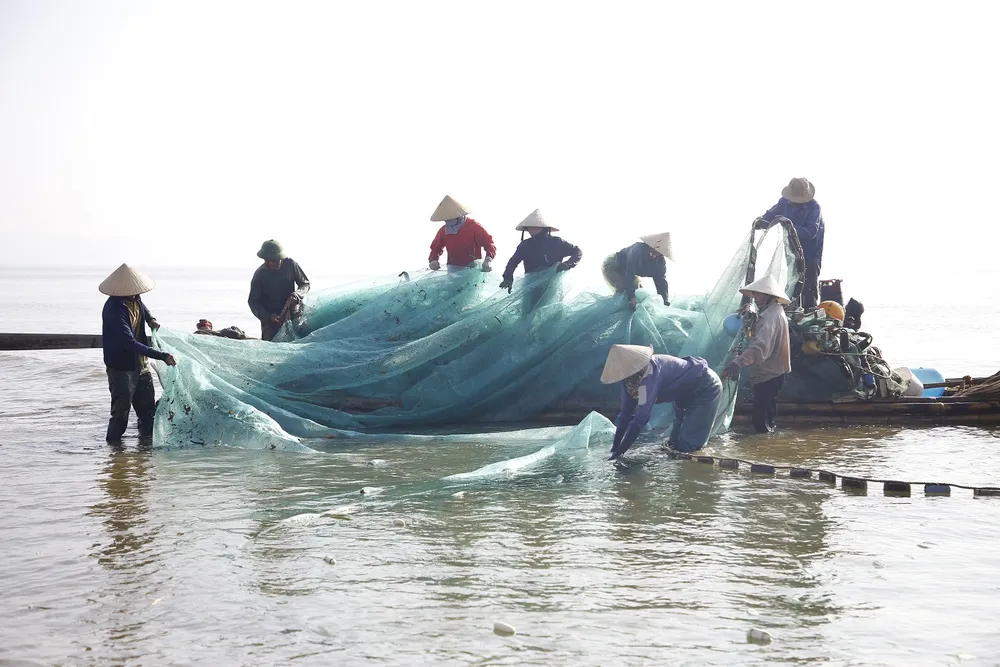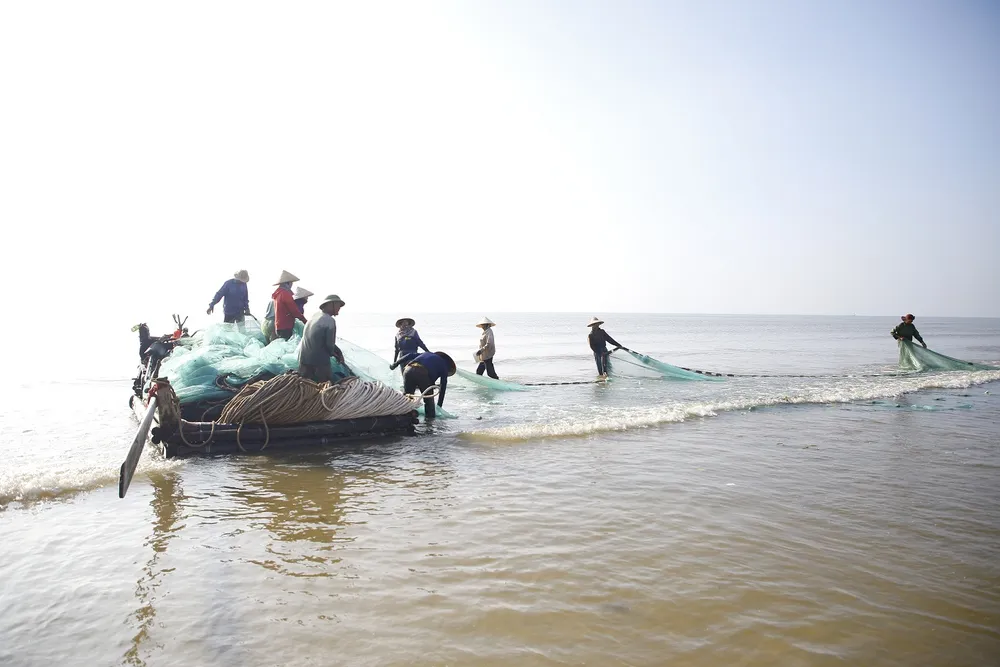 Mỗi sáng, tầm 4-5 giờ ngư dân lại ra khơi. Dụng cụ đánh bắt cá ngảng chủ yếu là lưới rùng. Sau khi bè ra khơi buông lưới và vây lại thành hình vòng cung, hai đầu lưới sẽ được kết dây nối vào bờ. Trên bờ, mỗi lưới sẽ có hàng chục người cùng máy tời hỗ trợ để kéo lên.
