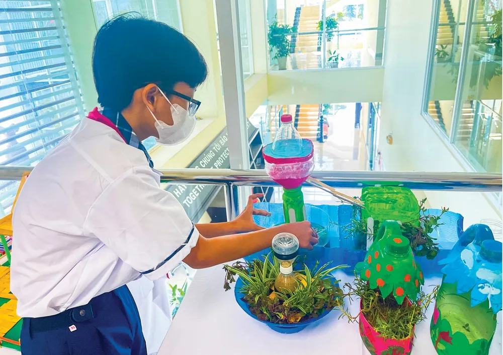 Trong bài thuyết trình về các sản phẩm tái chế được làm từ rác thải, em Nguyễn Phan Ngọc Li (lớp 7/5, Trường THCS Phong Phú) chia sẻ: “Nói đến bảo vệ môi trường thì chiếc thùng rác là vật dụng không thể thiếu. Do vậy, chúng em đã thiết kế chiếc thùng rác được tái chế từ giấy bìa cứng. Bảo vệ môi trường phải bắt đầu từ những hành động nhỏ như không xả rác bừa bãi, nhặt rác, sử dụng vật dụng thân thiện với môi trường... Chúng ta đã được dạy nên phân loại rác trước khi bỏ rác vào đúng nơi quy định chính vì vậy sẽ giúp xử lý rác thải tốt hơn. Những vật liệu có thể tái chế lại cũng sẽ được vận dụng lại để tiết kiệm hơn. Vì thế, hãy cùng nhau tạo ra những chiếc thùng rác theo từng nhóm để giúp cho việc xử lý và bảo vệ môi trường tốt hơn các bạn nhé”.