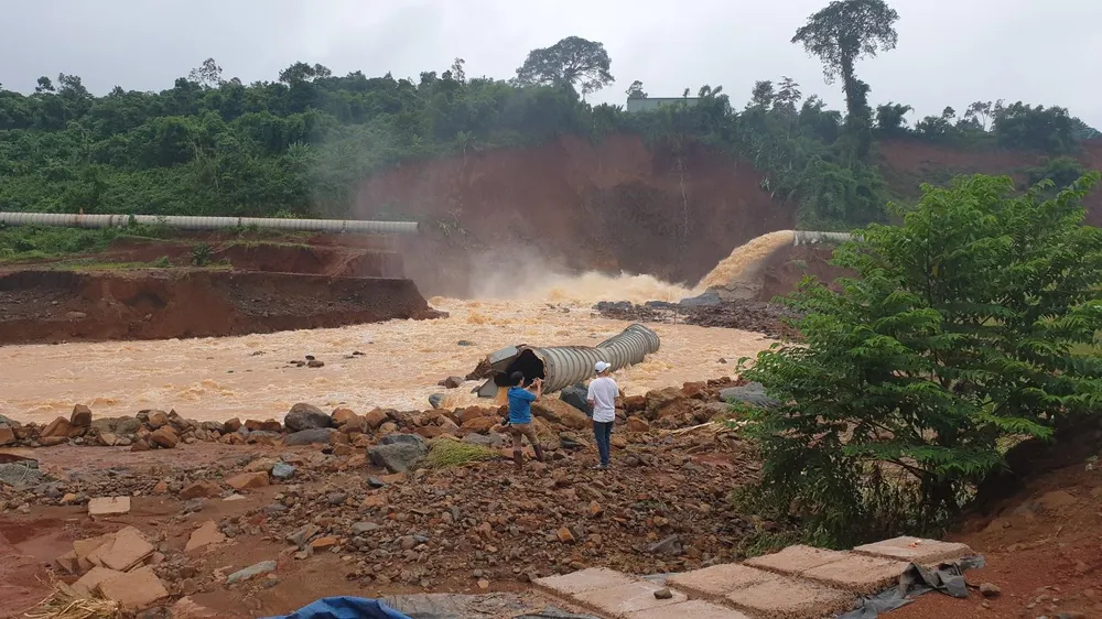 Sạt lở đất đồi gây vỡ đường ống áp lực tại chân thủy điện Đắk Kar