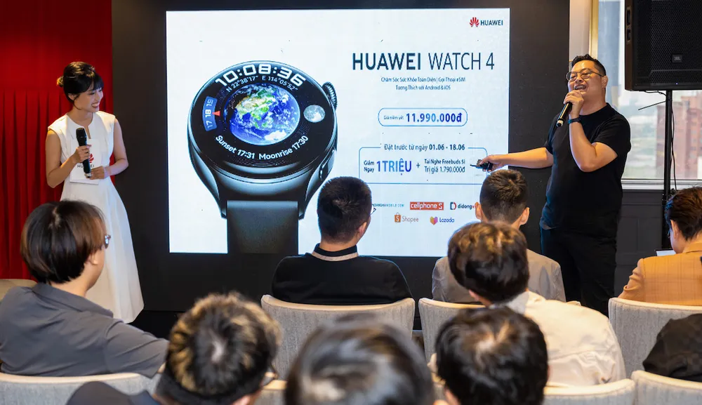 HUAWEI Watch 4 có giá niêm yết 11.990.000 đồng, giảm ngay 1 triệu và tặng kèm tai nghe Freebuds 5i trị giá 1.790.000 đồng trong thời gian đặt trước nói trên; Trong khi đó, tai nghe thông minh HUAWEI FreeBuds 5 lên kệ với giá 3.290.000 đồng, khuyến mãi giảm ngay 300.000 đồng, tặng kèm bao da tai nghe trị giá 299.000 đồng; Riêng HUAWEI Band 8 có giá 1.090.000 đồng, giảm ngay 100.000 đồng chỉ còn 990.000 đồng, tặng kèm quà trị giá 200.000 đồng cho khách hàng mua sản phẩm trong giai đoạn từ 1-6 đến 18-6-2023. Người dùng có thể tìm thấy cả ba sản phẩm tại các chuỗi cửa hàng bán lẻ như Hoàng Hà, CellphoneS, Di Động Việt và tại gian hàng chính hãng HUAWEI trên các sàn thương mại điện tử Shopee, Lazada, Tiki.