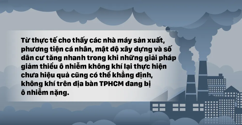 Từ thực tế cho thấy các nhà máy sản xuất, phương tiện cá nhân, mật độ xây dựng và số dân cư tăng nhanh trong khi những giải pháp giảm thiểu ô nhiễm không khí lại thực hiện chưa hiệu quả cũng có thể khẳng định, không khí trên địa bàn TPHCM đang bị ô nhiễm nặng.