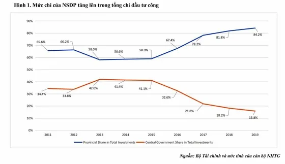 Trong bối cảnh đối với chi đầu tư, ngân sách trung ương chỉ chiếm khoảng 20% trong tổng chi đầu tư ngân sách nhà nước năm 2022, so với mức 40% cách đây 7 năm. Như vậy, chính sách phân cấp đã dành bình quân 80% đầu tư công được thực hiện qua các chính quyền địa phương giai đoạn 2017-2022 (Hình 1), sự chủ động của TPHCM là rất quan trọng.