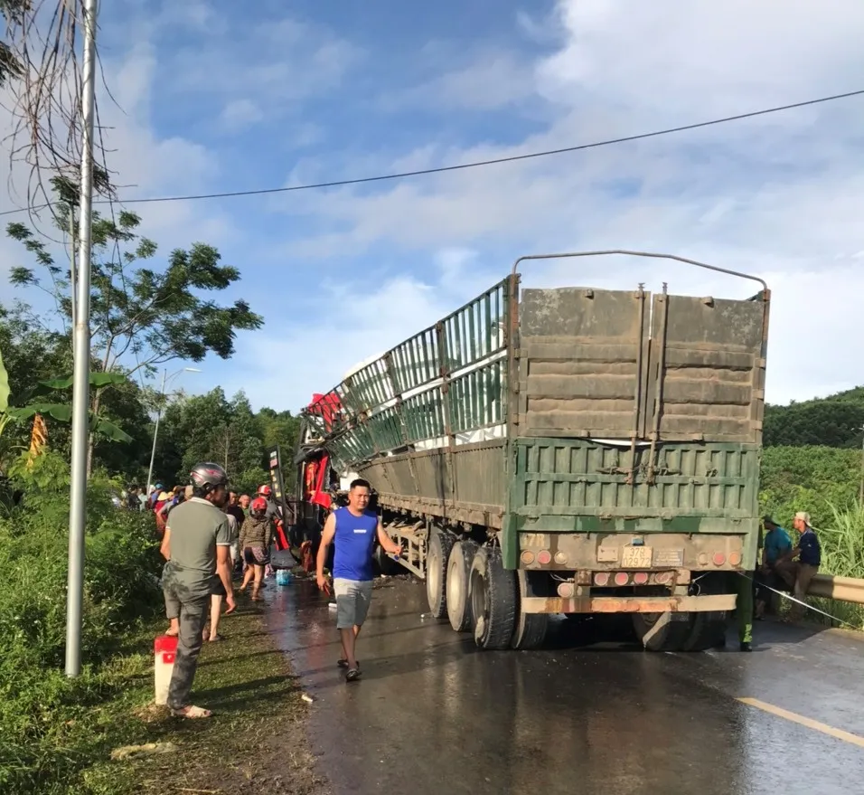 Theo thông tin ban đầu, vào thời điểm trên, xe khách BKS 81B-009.65 (chưa rõ danh tính tài xế) đang lưu thông theo hướng Nam - Bắc, khi đến dốc Ba Tầng (xã Hóa Quỳ) đã bất ngờ va chạm với xe đầu kéo BKS 37H-007.86 kéo theo rơ mooc 37R-029.72 chạy ngược chiều.