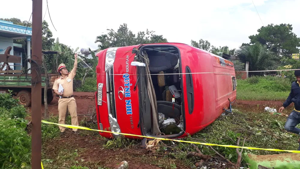 Cùng lúc này, xe ô tô chở khách BKS 47B-006.82 cũng di chuyển theo hướng nói trên, do né người đàn ông bị tai nạn trước đó, nên tài xế đã đánh tay lái sang bên phải và tông vào một chiếc xe máy BKS 59T1-050...cùng 2 người đàn ông đứng bên đường là ông Mai Văn Thiêm (70 tuổi) và Nguyễn Văn Hùng (trú thôn Phú Vinh, xã Ia Băng) trước khi lật nghiêng xuống nhà dân cạnh đó.