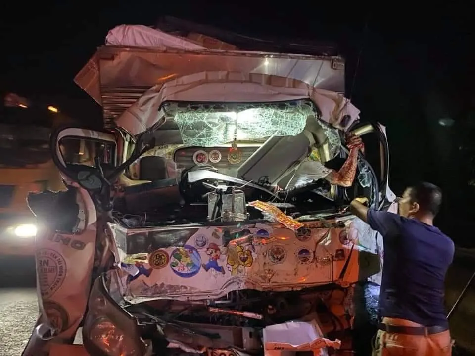 Cú tông mạnh làm phần đầu xe tải bị bẹp dúm, người phụ nữ tử vong trong cabin, lái xe bị thương nặng cũng bị kẹt trong cabin được người dân dùng vật cứng cạy cửa đưa nạn nhân đến bệnh viện cấp cứu.