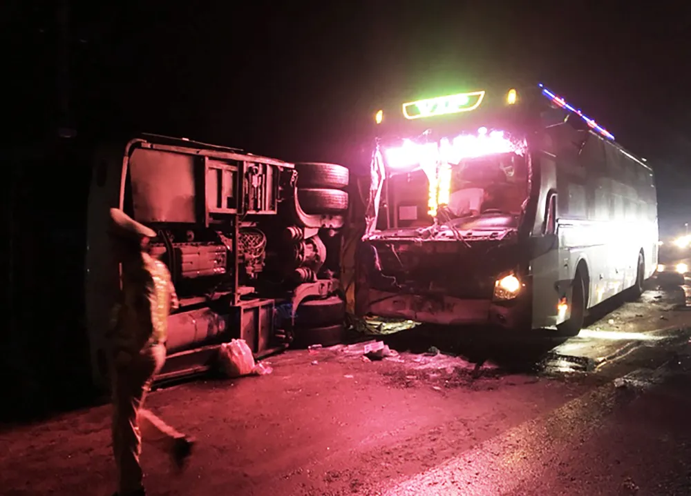 Cụ thể, khoảng 1 giờ ngày 9-1, tại km 1164 + 900, trên QL1A (đoạn qua thôn Vĩnh Bình, Mỹ Phong, Phù Mỹ) xe khách BKS: 81B-007.64, do Ngô Văn Quý (SN 1983, trú tại xã Tân An, huyện Đăk Pơ, tỉnh Gia Lai) điều khiển hướng Bắc – Nam, khi đến địa điểm trên thì va vào dải phân cách lật ngang giữa đường.