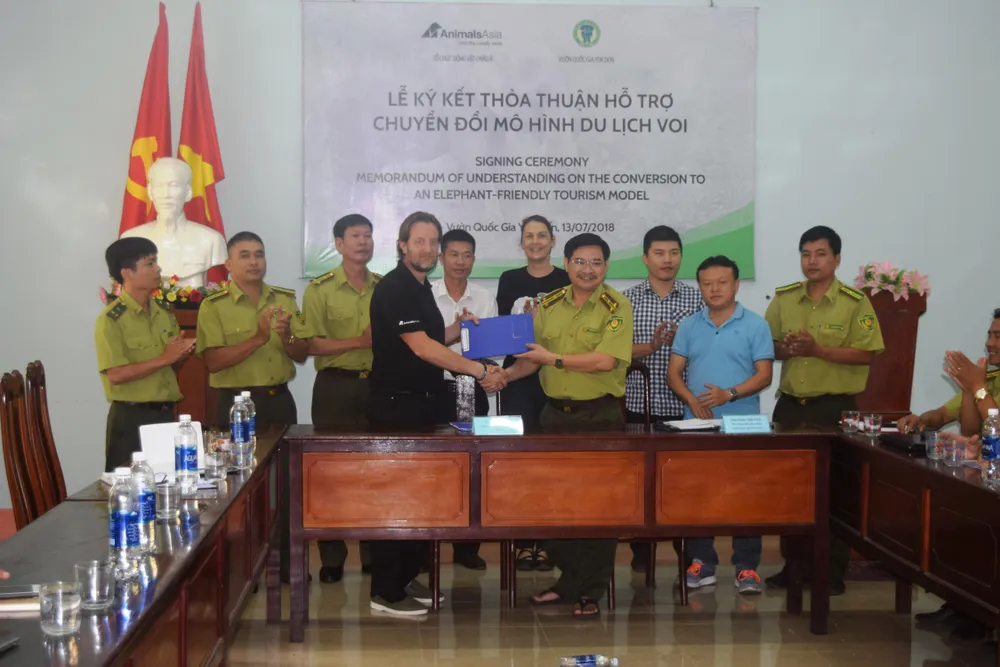 Tham dự lễ ký kết là Giám đốc Phúc lợi động vật của Tổ chức Động vật châu Á, ông David Neale và ông Phạm Tuấn Linh, Phó Giám đốc điều hành Vườn Quốc gia Yok Đôn cùng đại diện các ban ngành đoàn thể và các cấp chính quyền địa phương, kiểm lâm.