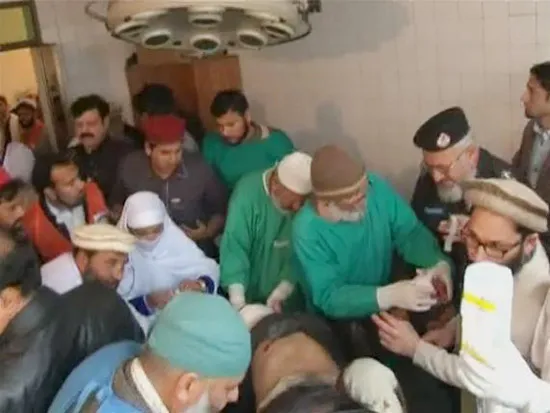 Cấp cứu người bị thương tại một bệnh viện ở Charsadda. Ảnh: REUTERS TV