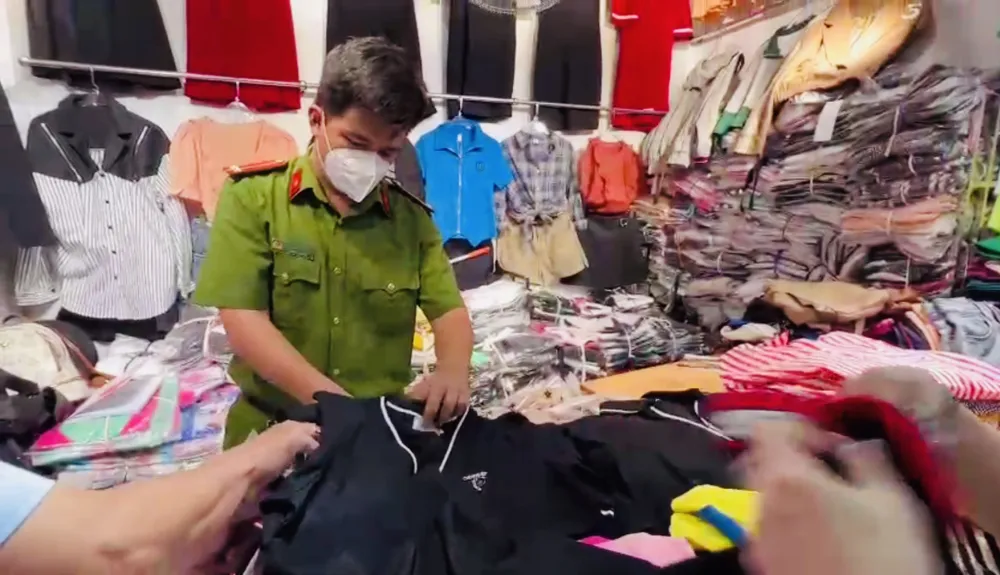 Trong tuần qua, Công an quận 5 phối hợp với Đội Quản lý thị trường số 5 đồng loạt kiểm tra nhiều cơ sở kinh doanh với TTTM An Đông Plaza, Chợ Tân Thành, Chợ Kim Biên… Qua kiểm tra, lực lượng chức năng phát hiện nhiều hàng hóa nhập lậu, hàng không rõ nguồn gốc, hàng giả thương hiệu nổi tiếng như: Hermes, Burberry, Louis Vuitton, Lacoste, Versace, Polo Ralph Lauren, Gucci, Chanel…