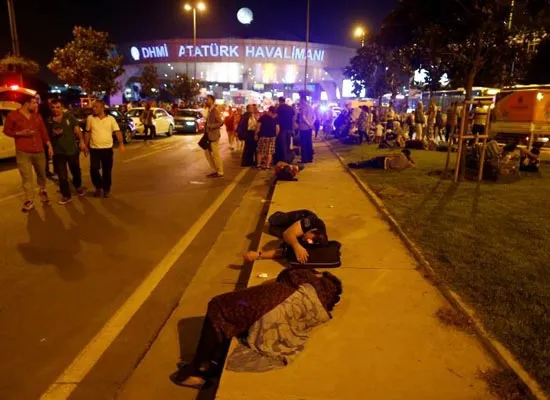 Hành khách bên ngoài sân bay Ataturk sau vụ tấn công khủng bố ngày 28-6-2016. Ảnh: REUTERS