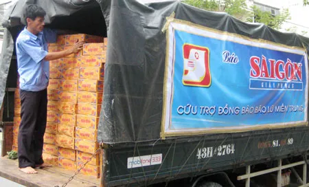 Báo SGGP đã quyết định chi 50 triệu đồng để mua 700 thùng mì tôm rồi dùng xe tải đưa từ Đà Nẵng vào Bình Định cứu trợ khẩn cấp đồng bào Bình Định đang bị cô lập (ảnh).
